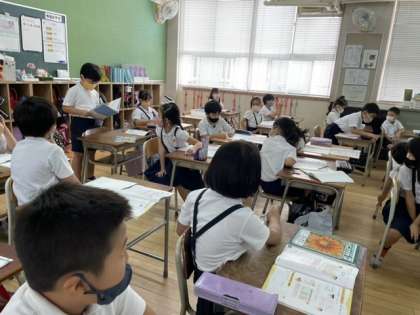 2年1組では、国語で「ニャーゴ」の学習をしています。