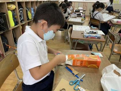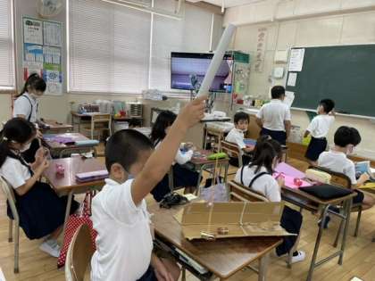 2年2組では、生活科でおもちゃ作りをしています。