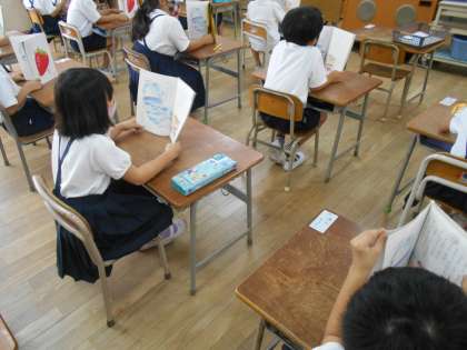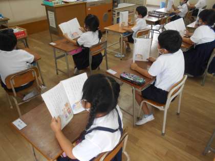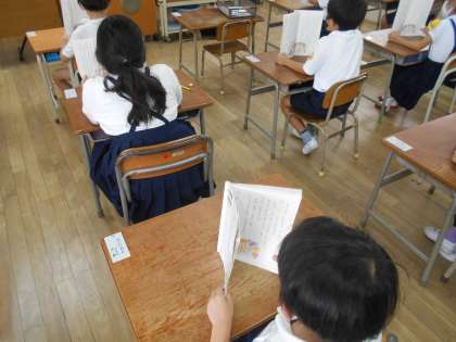 貝殻の音読をしました。学習も終わりになってきているので、みんな上手に読んでいます。家庭でも読んでいるので、姿勢よくはっきりした声でできています。長い文章にも慣れてきてすらすら読んでいます。