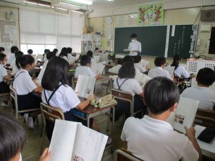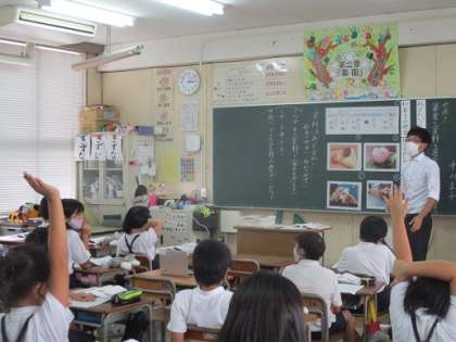 5年1組の研究授業が行われました。「和の文化を受けつぐ」の学習を、中泉尾小学校の先生たちに見ていただきました。子どもたちも緊張していたようです。教材文に使われている資料が適切かなどの話し合いをみんなでしました。緊張していながらも、みんな頑張る姿勢を出せていました。