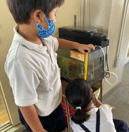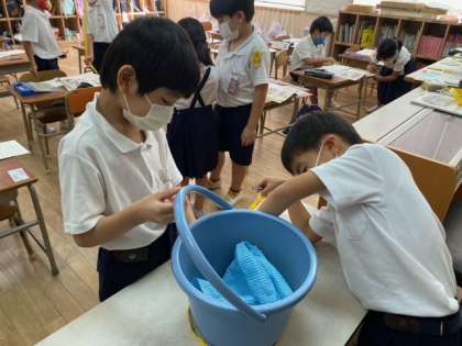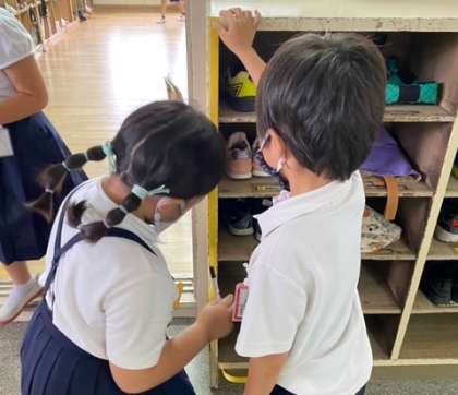 算数の「どちらがながい」の単元で、紙テープを使い、教室にあるいろいろなものの長さをはかりました。どちらが長いと思うか予想をしたり、長さの測り方を知り、とても楽しそうでした!