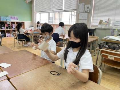 2年1組では生活科で「動くおもちゃ作り」をしました。