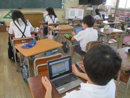 「和の文化を受けつぐ」の教材文を使った学習が終わり、パンフレットを作る学習が始まりました。今回は自分の和の文化のテーマを決めるために、いろいろな和の文化についてタブレットを使って調べました。興味をもって色々調べることができていたと思います。