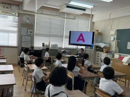 映像に合わせてアルファベットの発音をしたり、歌に合わせて手ぶりをつけたりしました。