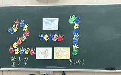 2年1組では学級目標の掲示を作るために以前手形を取りました。(詳しくはこちら