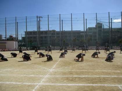 総合練習の後、団体演技の予行がありました。他の学年の子や先生たち、たくさんに見られている中で一生懸命踊ることができました。できる限りの力を発揮していたと思います。でもまだ満足していません。「ここもっと合わせよう」「ここもっと練習しよう」と意気込み十分です。当日はさらにいい演技になるように子どもたちは頑張っています。