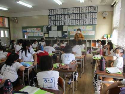 教室にもどった後は運動会のふり返りを行いました。一人ひとりの言葉を聞いていると、がんばるぞという思いが強かったのだろうなと思います。「一つになることができたと思う」「楽しく踊れてよかった」「これからもみんなで一つになってがんばっていきたい」という言葉が多かったです。応援に来てくれていた、特別ゲストの先生たちにもコメントをもらいました。自分たちがやってきたことがしっかり伝わっていたことがわかり、みんな満足そうでした。