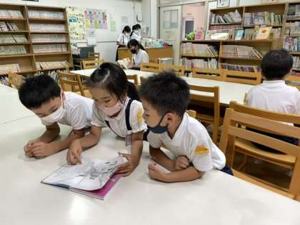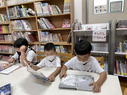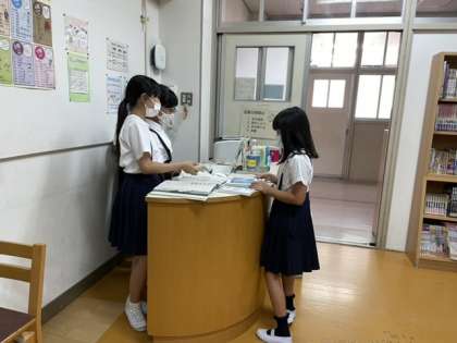 図書委員さんが図書の返却・貸し出しをカウンターでしています。