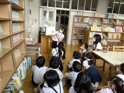 水曜日は学校図書館補助員の小澤先生が来てくださっているので、本の読み聞かせをしていただきます。