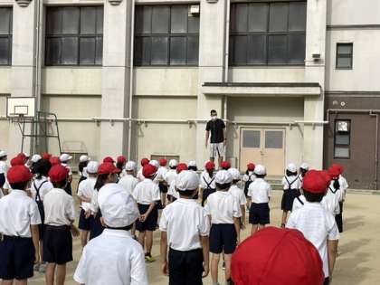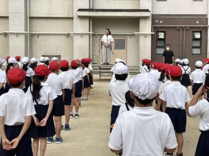 看護当番の先生からは、今月の生活目標「外で元気よく遊ぼう」についてのお話でした。