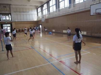 ソフトバレーボールをし始めて3回目です。今回はサーブをしっかりとレシーブし、つないで相手コートに返す練習をしました。自分の役割をすぐに判断をし、動かなければいけません。そこに戸惑ている子がたくさんいました。それでも返せた時は、みんなで喜びあっていました。これからどんどんうまくなっていってくれると思います。