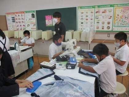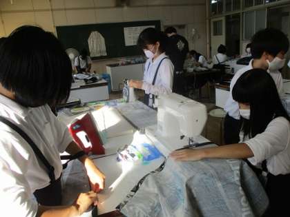 ミシンを使ってのエプロン作りが本格化してきました。「アイロンをあて、しつけぬいをし、ミシンでぬう」の繰り返しです。グループでアイロンやミシンを譲り合って行うことができました。完成が近づいている子もいます。