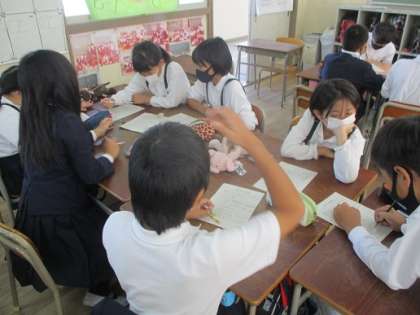 ソーシャルスキルトレーニングを行いました。写真は自分の考えたことをグループで発表し、その後クラス全体に発表しているところです。それぞれの意見を発表するだけではなく、グループとしての意見をまとめないといけない難しさがありました。それでも協力して取り組めていたと思います。