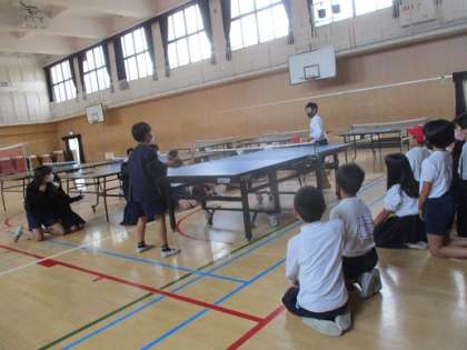 学級活動の時間を使い、クラスで「卓球大会」を行いました。行事ごと学習に追われる毎日ですが、みんなで楽しむことだけを考えて行うことができました。一番下の写真が決勝戦です。とても上手でびっくりしました。今度はまた違うことで行いたいと思います。