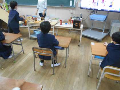 かたちあそびの学習をしています。いろいろな箱を使ってできることを見つけました。転がるものや積み重なるものなどに分けてみました。その後に、箱を使ってできるものを作りました。