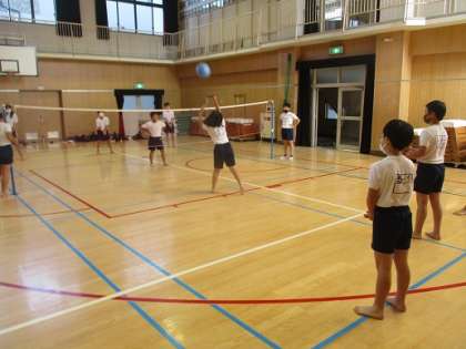 来週5日(金)に予定している学習参観は体育科で「ソフトバレーボール」を行おうと思っています。前回、チームとしての形が見えてきて、一人一人の役割ができてきました。今回はいろいろ試すのではなく、自分たちのチームの形がより完成するように何度も何度も練習しました。少し簡単にしたルールですが、とてもバレーボールらしいラリーが続くようになってきました。緊張感を持ちながら、集中して、1回1回を大切にしながら行うことができていました。ふり返る時間でも、話し合い活動が活発です。来週から試合を行っていきます。