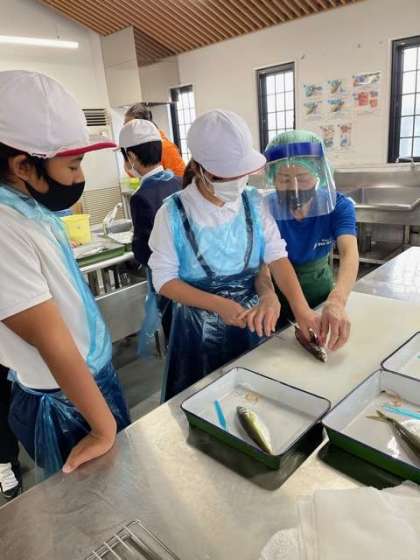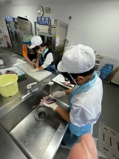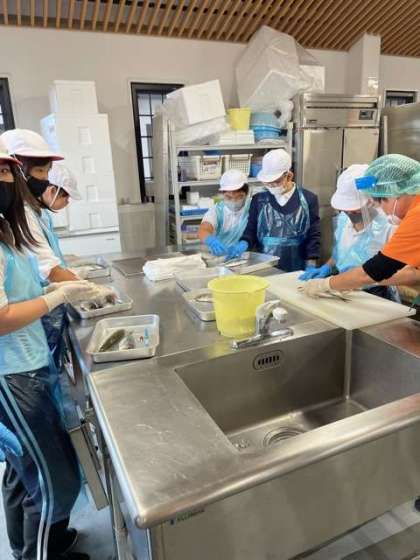 魚を釣り終わったら干物作り開始です。恐々包丁を手に魚を開いていきます。「開いてもまだ生きてるー」魚の生命力に圧倒されながら作業は続きます。