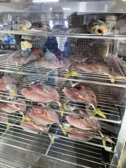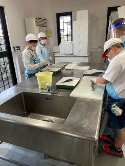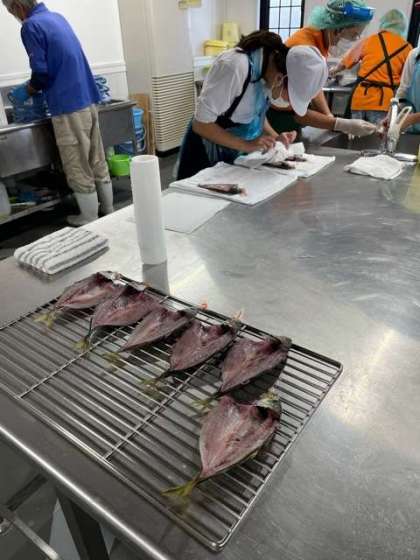 干物作りもいよいよ完成へ。開いて網に乗せて機械の中で乾燥させます。