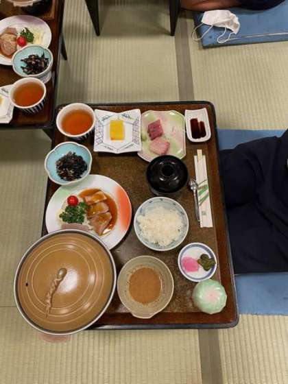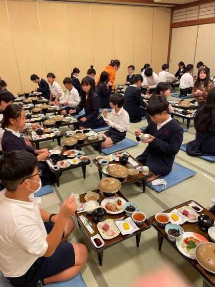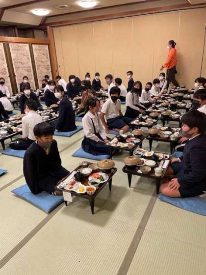 待ちに待った食事タイムです。食事場所の近くに来るといい匂いがしてきて、ますますお腹が空いてきました。みんなで美味しくいただきます。