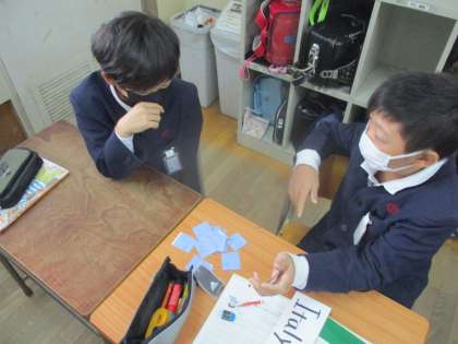 世界の国々について、学習しています。ドイツやイタリア、ペルーなどのくにの名前を英語で覚えています。今日はWhere do you want to go? I want to go to〜のフレーズをゲームを通しながら学習しました。最初はルールの理解に苦戦していましたが、段々慣れていった様子でした。