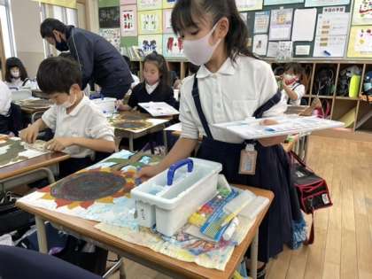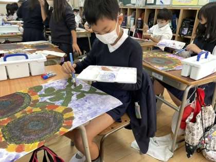絵の具で濃淡をつけたり、少し違う色を混ぜたりと工夫して塗っていました。