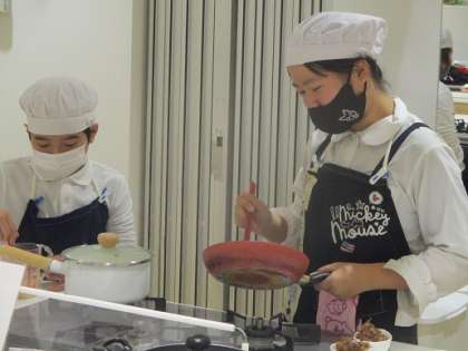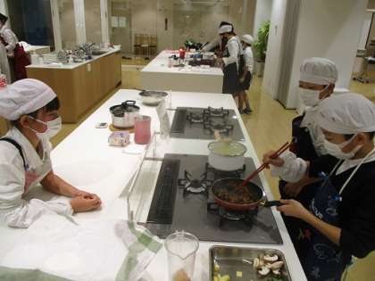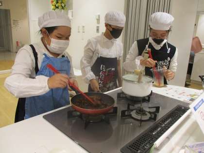 今回の調理実習はエコクッキングです。どこまで食べれるかなとか、水を使う量、洗剤の量などを考えながら作りました。環境のことを考えて調理をするいい機会になったと思います。