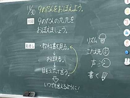 この日は、「9の段をおぼえよう」をめあてに班でスピード勝負をしました。