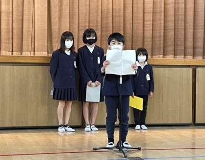 終業式では、「2学期の思い出」の作文を全校児童の前で読みました。