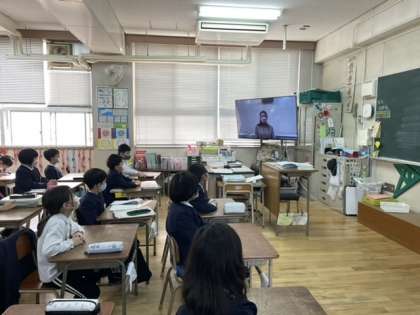 児童朝会はテレビ放送でありました。