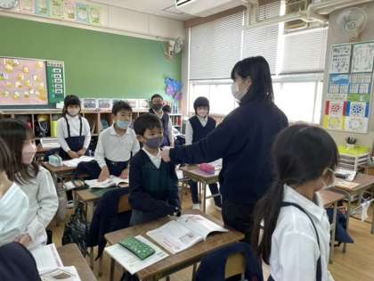 国語の「かさこじぞう」を音読してから、その語句が「かさこじぞう」の中に出てくるのかのクイズをしました