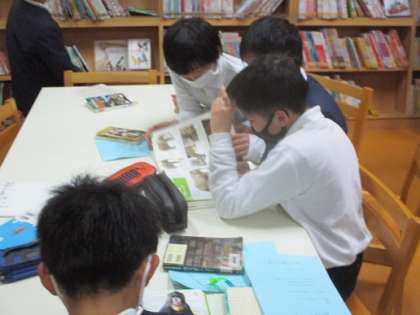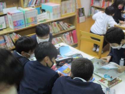 今回の図書の時間の読書のテーマは「動物の出てくる本」です。音楽で「アフリカンシンフォニー」という曲を合奏します。どのような動物がいるのか、自分を例えるなら何の動物かなどを考えながら読書に励みました。みんなにとっての先生の印象は「ゴリラ・サイ・いのしし・サル」などらしいです。理由を聞くと、「でかい・強そう・うるさい」からと言われました。みんなはどんな動物になったのか気になりますね。