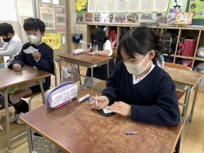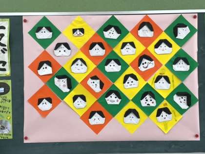 2年2組では、毎月後ろの黒板に季節の掲示をしています。