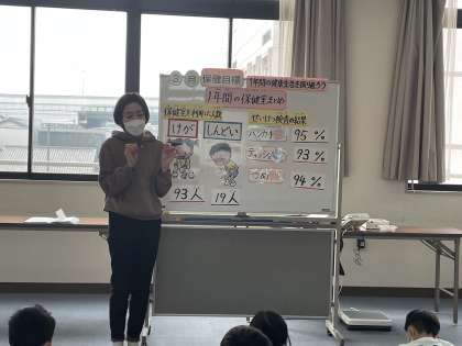 体重測定では、保健の先生から今年度の締めくくりの話がありました。