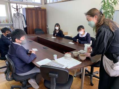校長先生とお茶会をしました。卒業生へ向けてのメッセージや作法について教えていただきました。短い時間でしたが校長先生と楽しい時間を過ごすことができました。