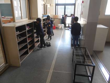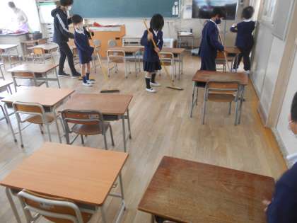 1年間使った教室や廊下を掃除しました。次の1年生が気持ちよく使ってもらうために、時間を使ってていねいにしました。とてもきれいになりました。1組の様子です。