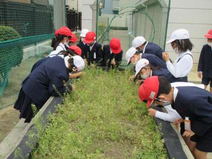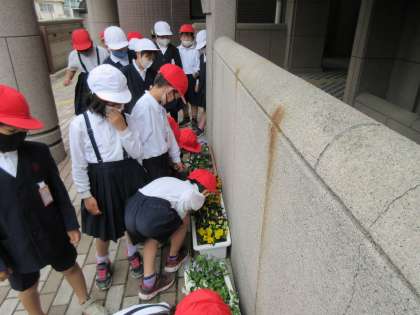 今日は生活科で小学校の中にある春を探しに行きました。春に咲く花や生き物を見つけることができました。花の匂いが気になって、匂いをかいでいる児童もいました。