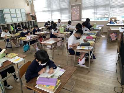 国語辞典の使い方を学習しました。辞典を初めて使った児童も多く、これから言葉を早く調べられるように練習していきます。ご家庭に国語辞典があればたくさん練習させてあげてください。