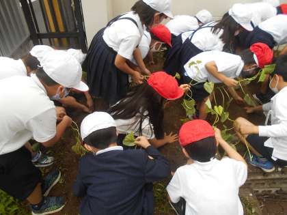 学習園にさつまいもの苗を植えました。ひとり1本苗があったので、みんな植える体験をすることができました。これからどんどん大きくなって、秋に収穫できるようになってほしいですね。