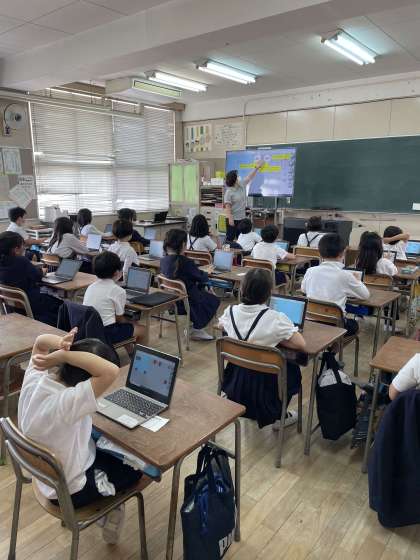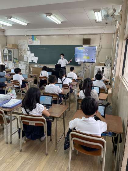 3年生はタブレットを使ってプログラミングの学習でした。扱いにもずいぶん慣れ、手際よく操作できていました。