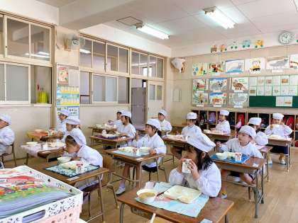 子どもたちも興味津々!楽しい給食が,より楽しくなりました。