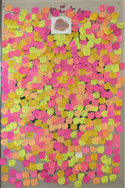 今年もふわふわ言葉ランキングを行いました。子どもたちの中には当たり前になってきているふわふわ言葉ですが、普段使っている言葉にもう一言こんな言葉があればいいなということで考えてもらいました。今年もふわふわ言葉の木が見えないくらいのメッセージで埋まりました。どんな言葉を考えてくれたのか、これから集計しますので結果はこうご期待です!