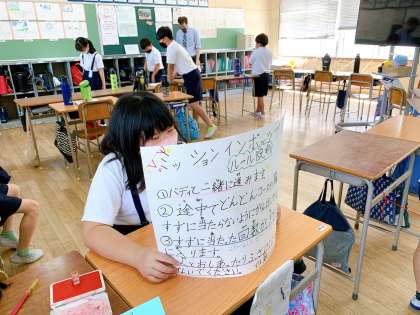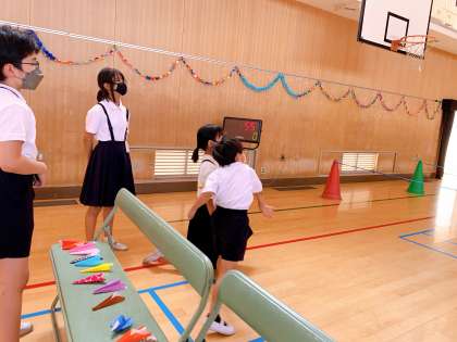 6年生のお店の様子です。1組は「6年1組に負けるなポーズ対決」「ミッションインポッシブル」,2組は「THE 飛行機パラダイス」でした。6年生にとっては,最後の中泉尾子どもまつり。最高学年として,ほかの学年をまとめつつ,自分たちが率先して楽しむ様子がたくさん見られました。