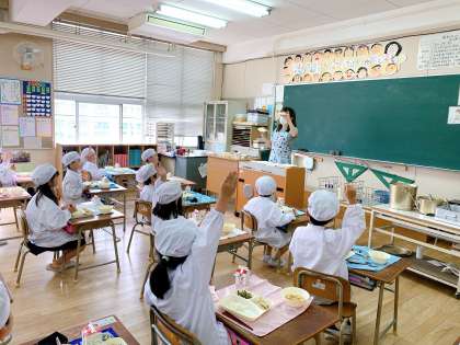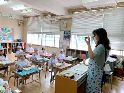 給食に「いわしの天ぷら」がでました。栄養教諭の先生が,実物大の2種類の魚を見せてくださって,子どもたちも興味津々。「どちらがいわしでしょう?」と聞かれて,「こっちー!」と元気よく,手を挙げていました。