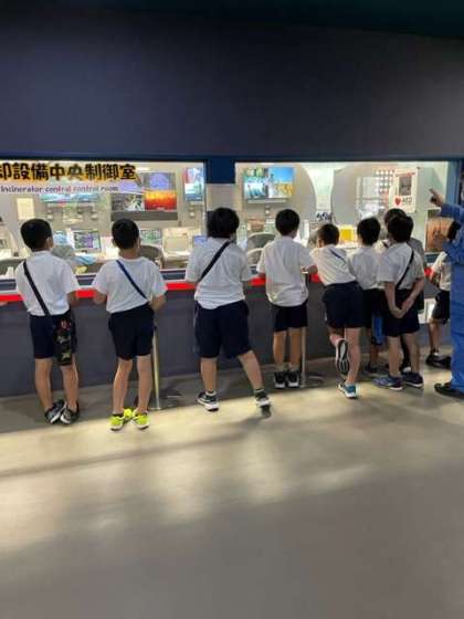 舞洲のごみ焼却場に見学に来ています。スケールの大きさにみんな圧倒されています。とってもきれいな建物でいろいろなことを教えてもらうことができました。