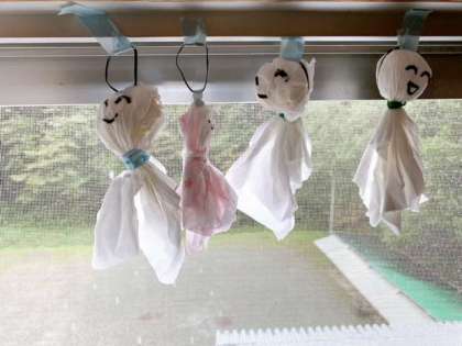 降ったり止んだりを繰り返すお天気の中、晴れてくれますようにと子どもたちの作ったてるてる坊主です。お願い聞いてくれるといいですね。