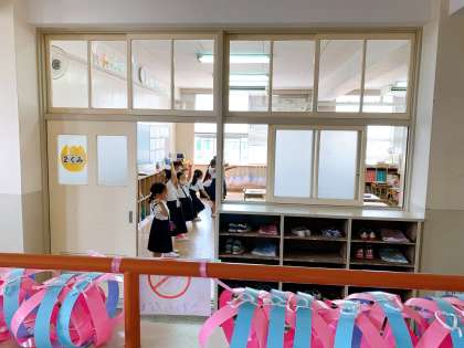 休み時間に元気な声が聞こえてくるなあとのぞいてみると,1年生が教室で運動会のダンスの練習をしていました。元気いっぱいです。
