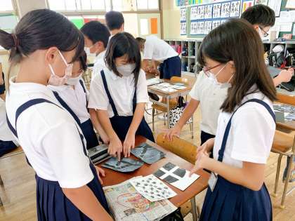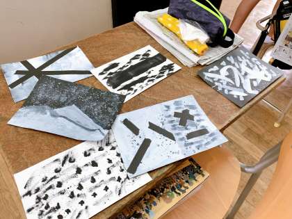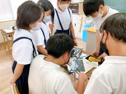 白と黒の画用紙に,白と黒の絵の具で色をつけて,ひとりひとり違う作品をつくっていました。友だちの作品を見て,「すごい!」「どうやってつくったん?」と交流し,盛り上がっていました。