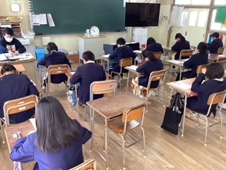 学力経年調査(国語・社会)を行いました。これまでの学習についてその学習内容がどのくらい身についているのかということを確認する調査です。子どもたちはみんな真剣に取り組んでいます。