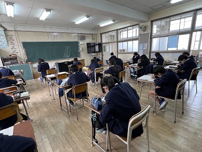 総合の時間では、漢字検定に向けて対策の勉強をしています。過去問題を解いた後、自分が間違った漢字を、一生懸命書いて覚えています。来週に向けて、みんな静かに、やる気を燃やしています。