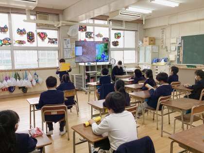 2年生の学習参観の様子です。生まれてからこれまでの自分の成長について,絵巻物にまとめたものを発表しました。